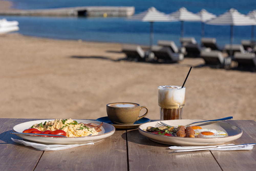 Let the easy-going island spirit tempt you with a lovely meal at our restaurant’s sea-facing terrace. Featuring Greek and Mediterranean flavours, it is open from morning until late at night, tempting you to enjoy breakfast, lunch and dinner in a relaxed setting, overlooking Scala beach.