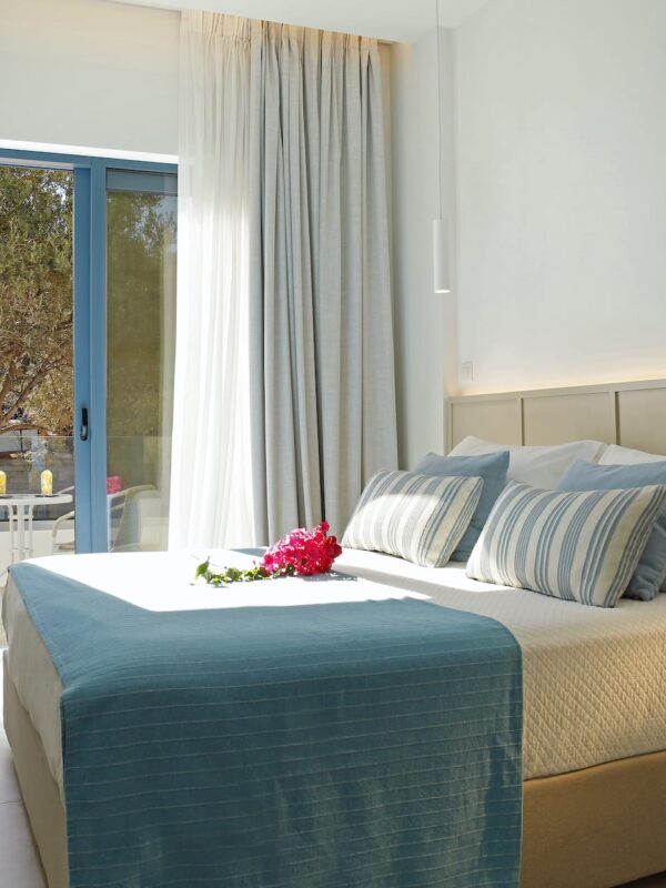 The Oasis Beach Hotel & Spa combines luxury with the simple joys of Greek island life. Just steps from the beach and five minutes away from the village of Scala, the tourist centre of the island, where you will find a variety of bars, tavernas and a small selection of shops.